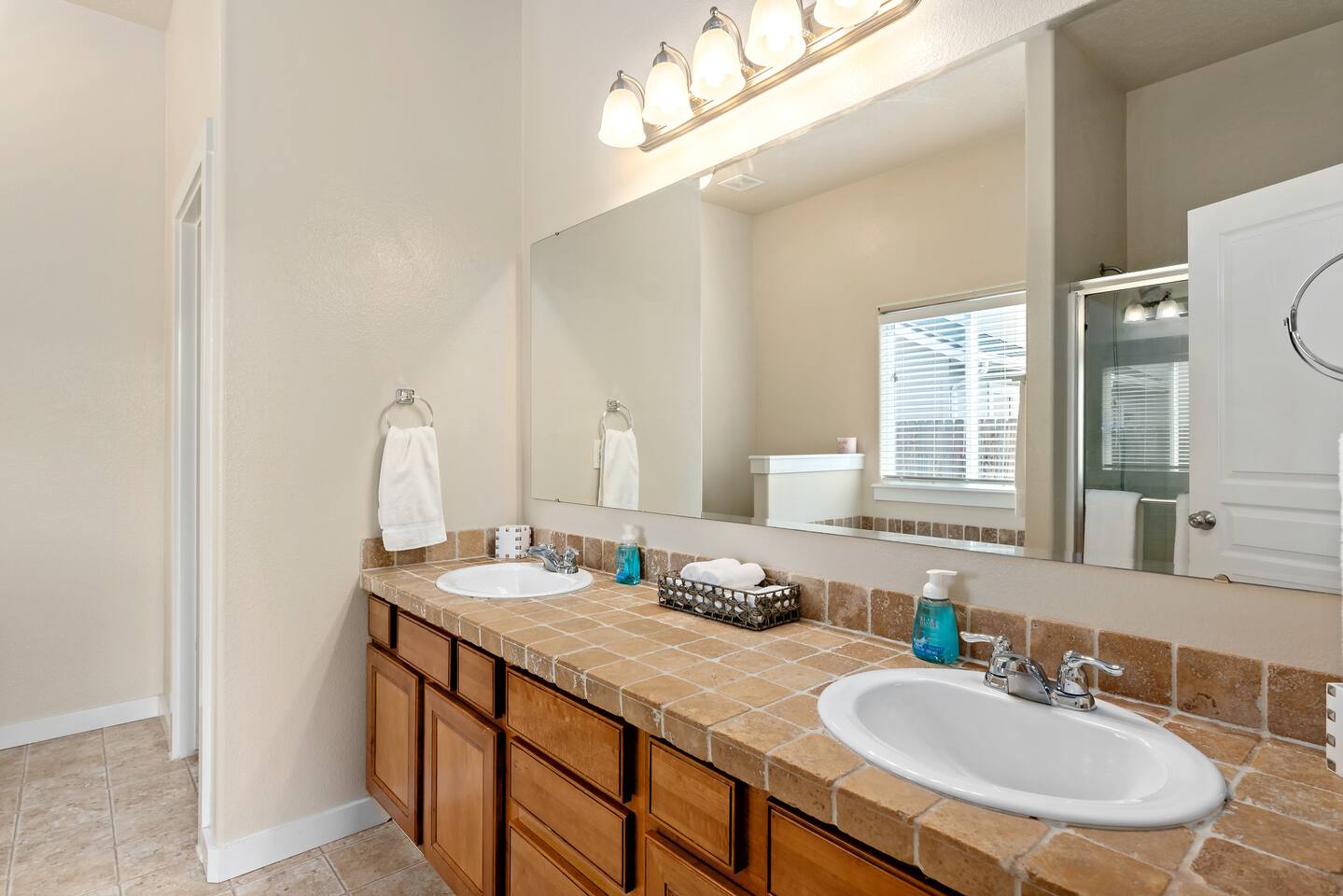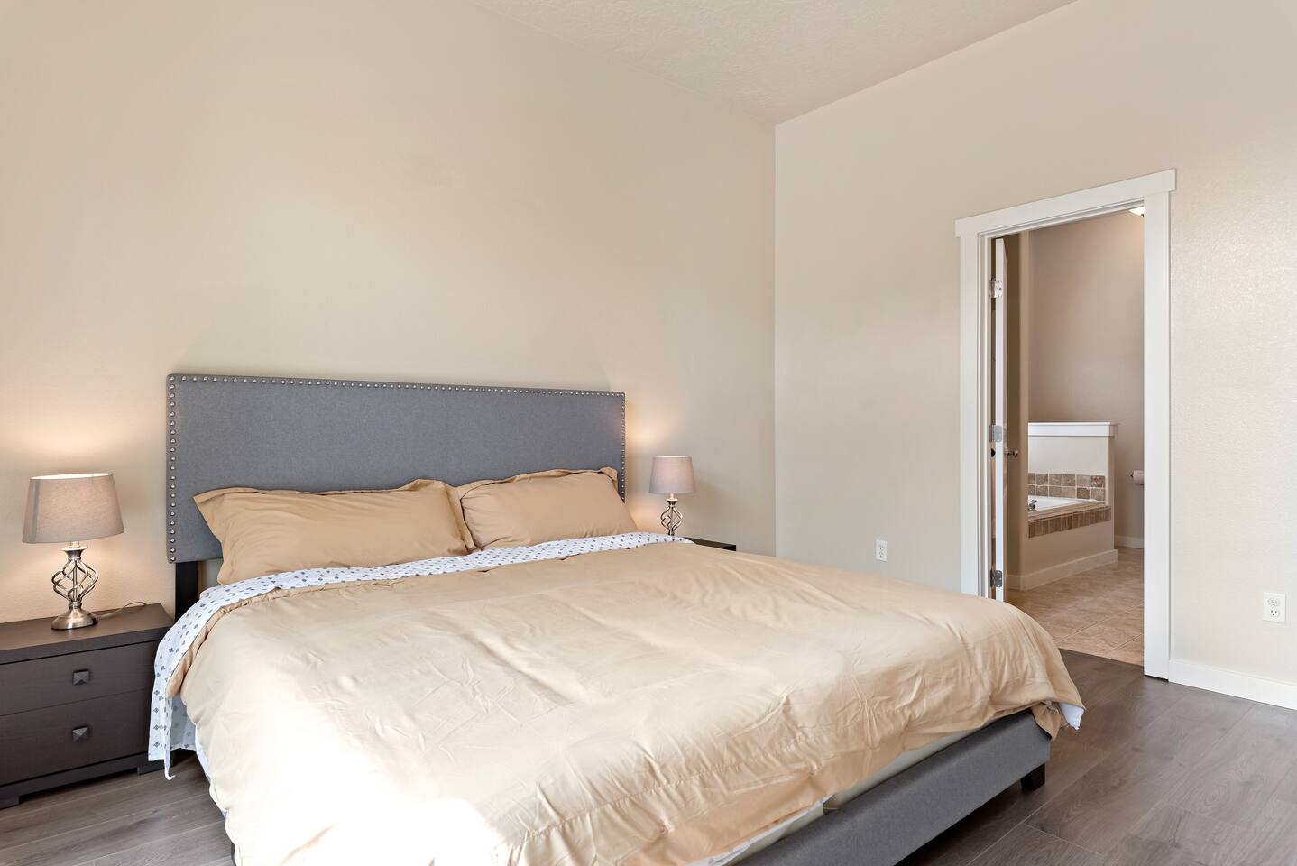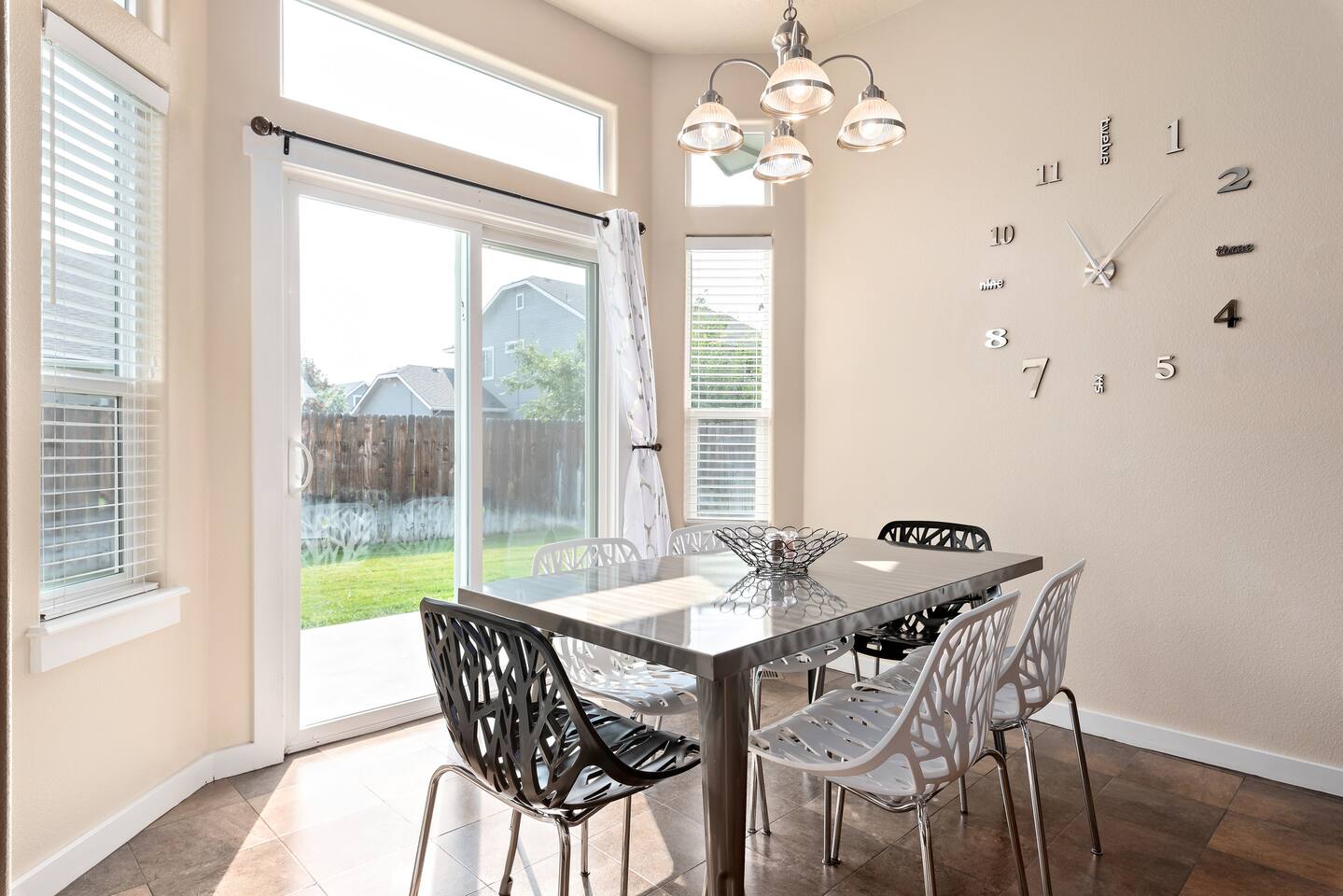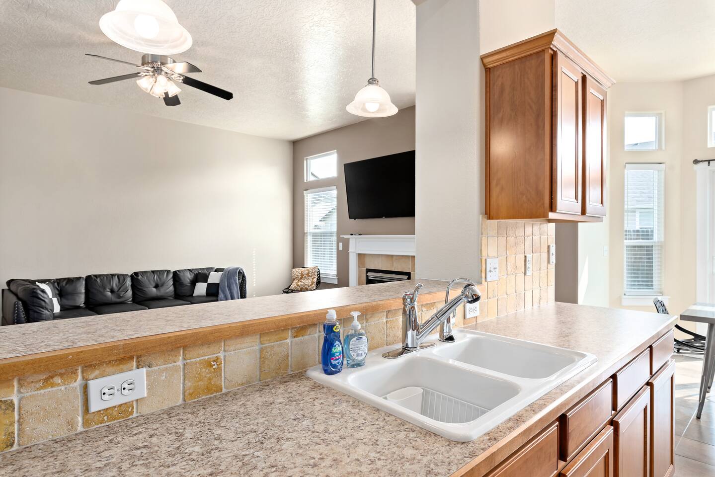 Step into a bright and inviting home designed for comfort and fun. The open-concept living space is perfect for gathering after a day of exploring. **Living Area:** * Cozy gas fireplace * Comfortable seating for the whole family * 65” Smart TV for streaming your favorite movies and shows **Kitchen & Dining:** * Fully equipped kitchen with modern appliances * Coffee maker, toaster, blender, and kettle * Dishwasher for easy cleanup * Full set of dishes, utensils, and basic cooking essentials (pots, pans) * Dining table with seating for six **Bedrooms:** * Master Suite: Plush king-sized bed, 55" Smart TV, and a dedicated desk with high-speed Wi-Fi. * Two additional comfortable bedrooms for a restful night's sleep. **Family Fun & Amenities:** * Game room with foosball and air hockey tables * Private, fully fenced backyard with a BBQ grill * Full-size clothes washer and dryer * Family essentials provided: portable crib, walker, and high chair.